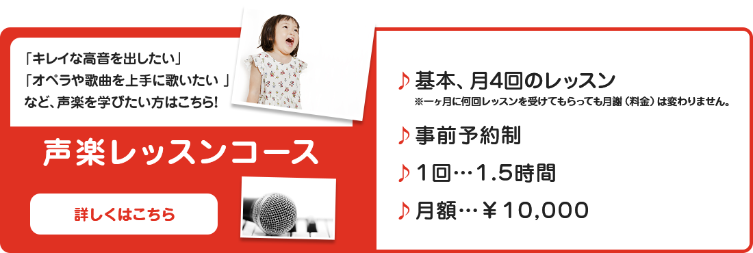 | レッスン | 【レッスン時間】 ・ピアノ:1時間 ・声楽:1時間 ≫詳しくはこちら! 【営業時間】 |